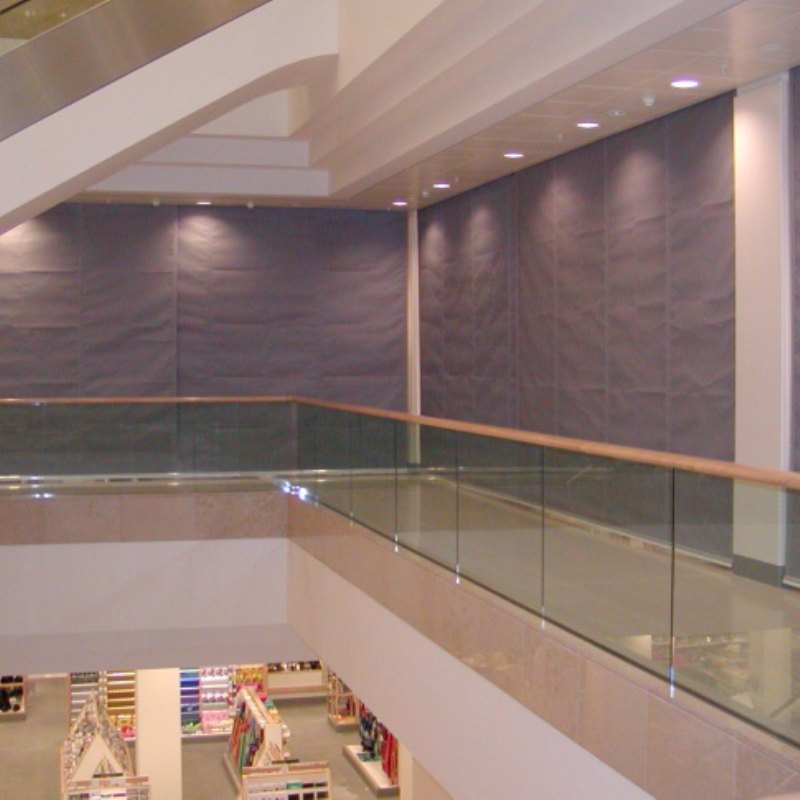 Fixed and automatic curtains for smoke compartmentation.