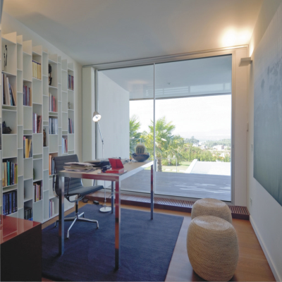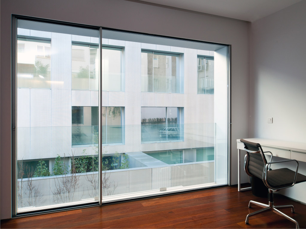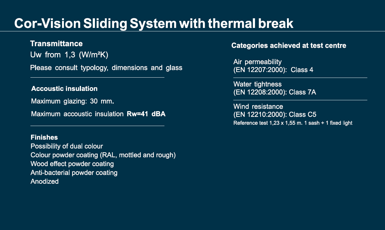 An elegance in design that looks to cover great light spaces with minimum frame fragments of between 9-14% of the total surface. It shows seen centre junction sections of only 20 mm, in the lateral junction at 77 mm and the top/bottom junctions at 57 mm.