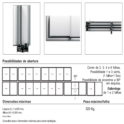 This presents a new type of frame for 2 or 3 rails that allows the incorporation of a stainless steel rail that affords increased sliding smoothness, an increase in loading support for the bearings (up to 320 kg/sash) and increased durability.
